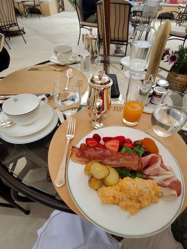 Two Eggs anyway, choice of meat,grilled hashbowns, truck toast and our fresh cut fruit garnish. Add a side of pancakes...$4